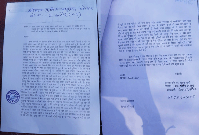 सविता शर्मा ने बताया कि मेरे पति की मृत्यु के बाद मेरी सास आशा शर्मा और मेरी ननंद ने मेरे मकान पर कब्जा कर लिया में मेरे परिवार में भाइयों के घर गई थी उस दौरान मेरी सास आशा शर्मा ने मेरे घर का समान रख लिया और मुझे घर में नहीं आने दिया मैंने हर जगह आवेदन दिया थाने में रिपोर्ट दर्ज कराई सीएम हेल्पलाइन पर भी शिकायत करी कलेक्टर में भी आवेदन दिया मुझे आज कलेक्टर कार्यालय में जी 12 में भेजा गया मगर यहां से भी मुझे केवल आश्वासन ही दिया है मैं अपनी दो बेटी को लेकर दर-दर भटक रही हूं कोई भी सहायता करने वाला नहीं है मेरी शासन प्रशासन से गुहार है कि मुझे जल्द से जल्द इंसाफ दिलाया जाए कलेक्टर जी 12 में आज मुझे एक हाई कोर्ट का नोटिस दिया गया जो कि मेरी सास आशा शर्मा द्वारा दिया गया।