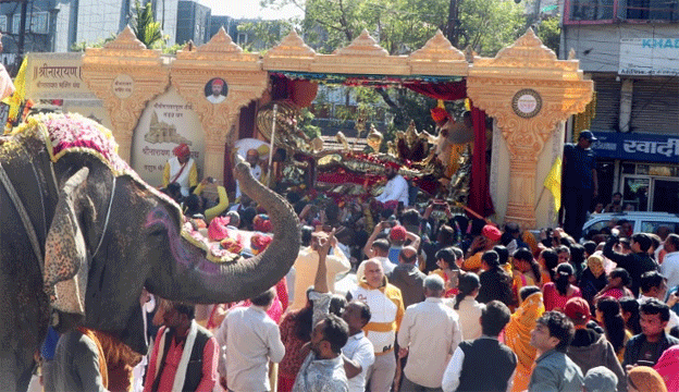 इंदौर। इंदौर के राजवाड़ा स्थित महालक्ष्मी मंदिर के सामने आज एक ऐतिहासिक और भव्य दृश्य देखने को मिला, जब भगवान विष्णु की 24 करोड़ रुपये की पंचधातु से बनी 21 टन वजनी अद्भुत प्रतिमा भक्तों के दर्शन के लि...
