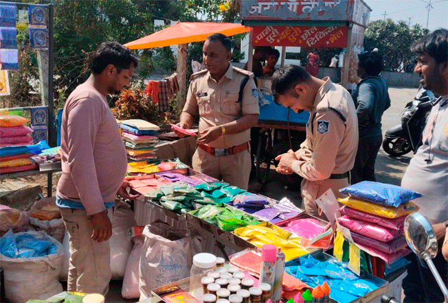 होली/रंगपंचमी पर हानिकारक केमिकल युक्त रंगों की रोकथाम हेतु पुलिस की विशेष चेकिंग व जागरूकता के साथ प्रभावी कार्यवाही