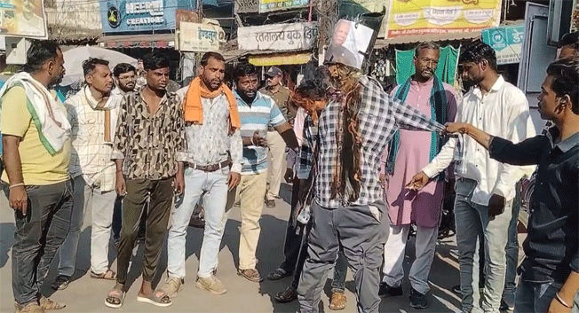 बुरहानपुर में बजरंगियों का उग्र प्रदर्शन बांग्लादेश में हिन्दूओ की निर्मम हत्या के विरोध में किया पुतला दहन, गूंजे  बंगलादेश मुर्दाबाद के नारे