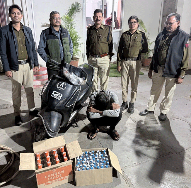 50 पाव देशी मदिरा प्लेन व दूसरी पेटी में 12 बोतल लण्डन प्राईड विदेशी मदिरा जब्त की