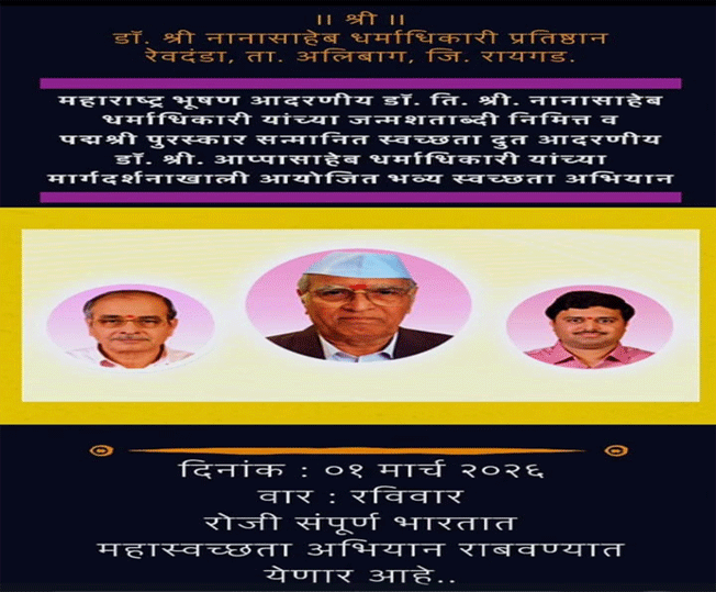 महाराष्ट्र भूषण आदरणीय डॉक्टर श्री नाना साहेब धर्माधिकारी की जन्म शताब्दी के शुभ अवसर पर संपूर्ण भारत देश मैं सेवा संकल्प अभियान के तहत इंदौर शहर के सभी  सेवको द्वारा 1 मार्च रविवार 2026 को  मालवा मिल...