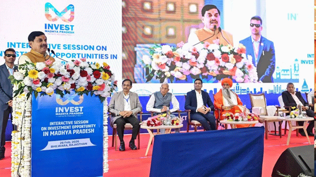 भोपाल। राजस्थान की वस्त्र नगरी भीलवाड़ा में आयोजित ‘इंटरैक्टिव सेशन ऑन इन्वेस्टमेंट अपॉर्चुनिटीज इन एमपी’ में मुख्यमंत्री डॉ. मोहन यादव ने निवेशकों को प्रदेश में उद्योग स्थापित करने का आमंत्रण दिया। उ...