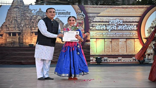 इंदौर की 11 वर्षीय नृत्यांगना ऋद्धि सेन ने खजुराहो बाल नृत्य महोत्सव में बढ़ाया शहर का नाम