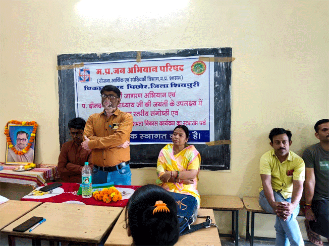 दैनिक रणजीत टाइम्स संवाददाता जगदीश पाल पिछोर( शिवपुरी)  जन अभियान परिषद् पिछोर द्वारा सीएमसीएल डीपी की कक्षाओं  के उन्मुखी कार्यक्रम में दीनदयाल उपाध्याय जयंती मनाते हुए स्वदेशी वस्तु अपनाने का संकल्प...