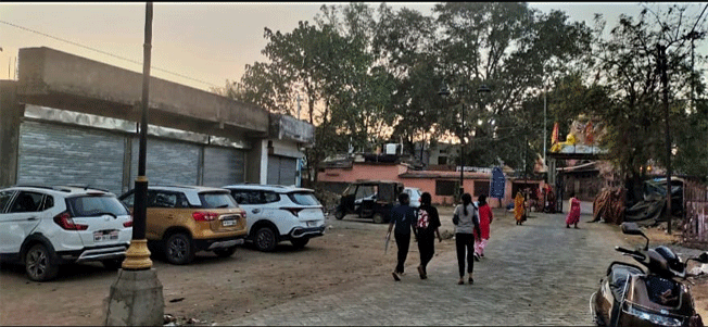 शहर में भूमाफिया के हौसले बुलंद,अब मन्दिर की पार्किंग जमीन पर डाली नजारl