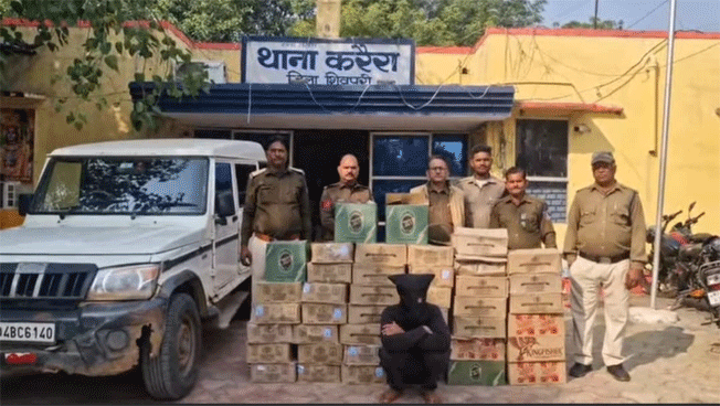 करैरा पुलिस की बड़ी कार्रवाई, 41 पेटी शराब और बोलेरो जब्त