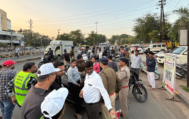 इंदौर ट्रैफिक पुलिस द्वारा बिना हेलमेट 1351 वाहन चालकों पर कार्यवाही