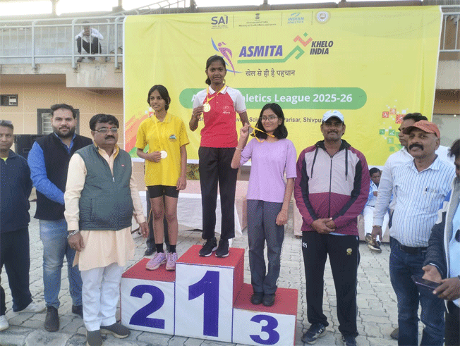 दैनिक रणजीत टाइम्स संवाददाता जगदीश पालशिवपुरी/पिछोर- अस्मिता एथलेटिक्स लीग शिवपुरी खेलो इंडिया 2025 टैलेंट सर्च प्रतियोगिता में  60 मीटर दौड़ और लंबी कूद एथलेटिक्स प्रतियोगिता में काजल लोधी ने जीता गो...