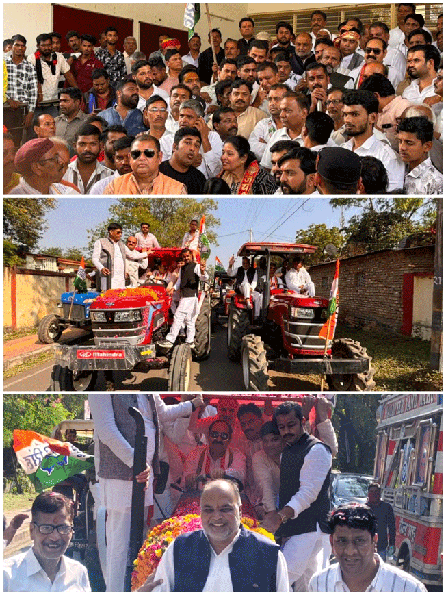 किसानों के सम्मान में कांग्रेस द्वारा ट्रैक्टर से किसान न्याय यात्रा निकाली