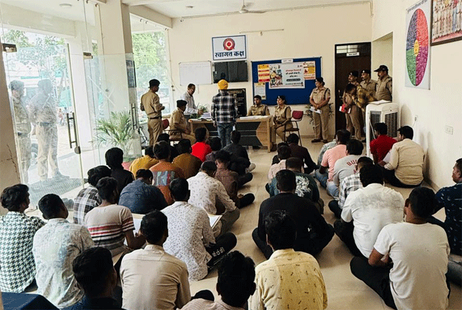 पुलिस थाने में गुंडे बदमाशों की परेड के साथ ही लगी अपराधों से दूर होने की पाठशाला