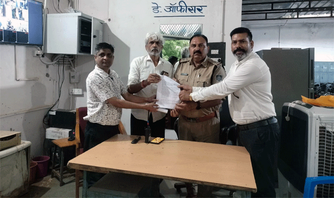 कांग्रेस विधायक साहब सिंह गुर्जर के विवादित बयान पर संघ स्वयंसेवकों ने थाना प्रभारी को सौंपा आवेदन