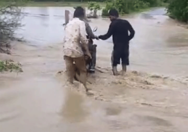 उफनते नाले में बाइक समेत बह गया युवक, तैरकर बचाई जान