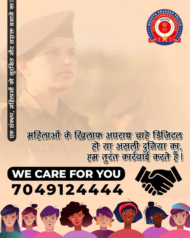 इंदौर पुलिस कमिश्नरेट में महिलाओं को कॉल पर परेशान, अपशब्द कहने, छेड़छाड़ करने वालों के विरुद्ध तत्काल कार्यवाही हेतु We Care For You हेल्पलाइन की सुविधा उपलब्ध है। उक्त We Care For You हेल्पलाइन के म...