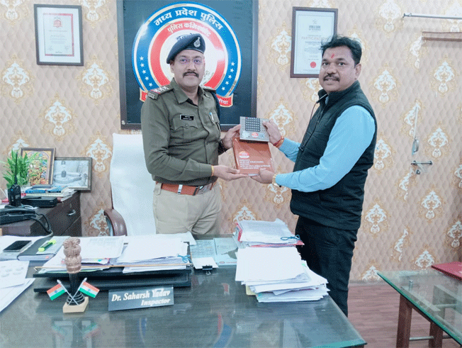 कनाडिया थाना प्रभारी श्री सहर्ष यादव को नववर्ष का कैलेंडर, डायरी भेंट की