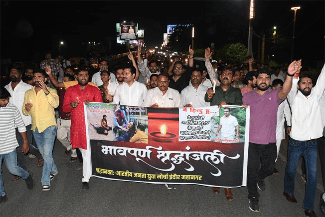 रिपोर्ट अनिल चौधरीभारतीय जनता युवा मोर्चा द्वारा पहलगाम आतंकवादी हमले में शहीद हुए भारतीयों को श्रद्धांजलि देने के लिए गांधी हॉल से गांधी प्रतिमा रीगल तक कैंडल मार्च निकाला गया नगर अध्यक्ष सुमित मिश्र...