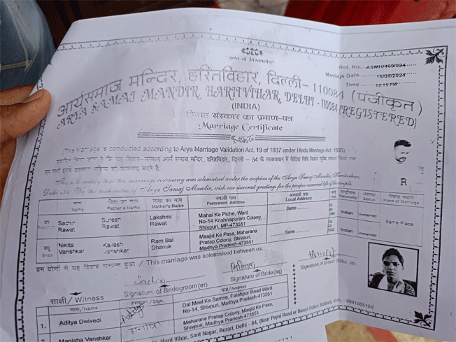 निकिता वंशकार ने बताया कि आईटीबीपी जवान सचिन और उसकी शादी साल 2024 में हो चुकी थी। दोनों ने आर्य समाज मंदिर से लव मैरिज की। लेकिन हाल ही में 3 मई को जवान ने दूसरी शादी कर ली, जिसकी फोटो उसके पास आई है। हालांकि सास ने उसकी बात को गलत ठहराया।
