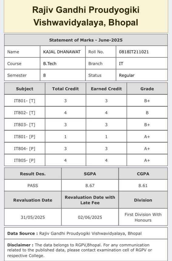 काजल धनावत ने बीटेक आईटी सेक्टर में 86 प्रतिशत अंक प्राप्त कर इंजीनियर की उपाधि प्राप्त कर मीणा समाज का गौरव बढ़ाया