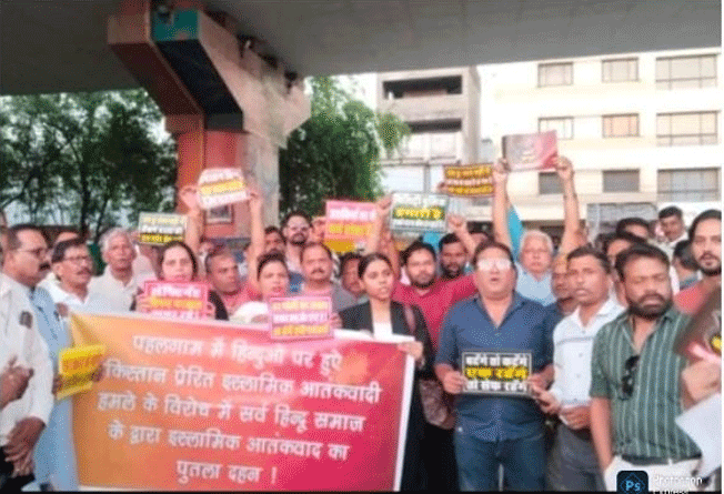 हिंदू तीर्थयात्रियों पर आतंकी हमले के विरोध में राष्ट्रपति को सौंपा गया ज्ञापन, इंदौर में पाकिस्तान का पुतला दहन