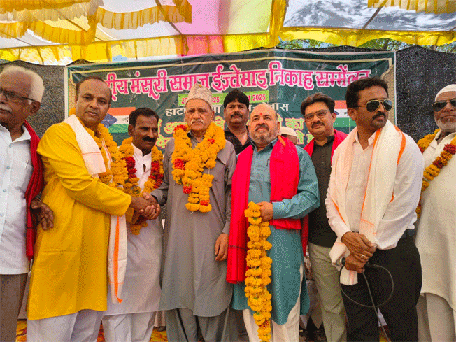 आज नगर हाटपिपलिया में राष्ट्रीय मंसूरी समाज के बेनर तले मंसूरी समाज का दूसरा सामूहिक सम्मेलन मदीना मस्जिद परिसर में संपन हुआ। राष्ट्रीय मंसूरी समाज के जिला अध्यक्ष एहसान भाई मंसूरी ने बताया कि इस सम्मेलन में मुस्लिम समाज के 14 जोड़ों के निकाह संपन्न हुए। कार्यक्रम में मुख्य अतिथि के रूप में राष्ट्रीय मंसूरी समाज के प्रदेश अध्यक्ष सलीम भाई कबाड़ी, साकिर भाई बेटमा , गुड्डू भाई बेकरी वाले इंदौर, हकीम मंसूरी पार्षद टोंकखुर्द, विशेष अतिथि के रूप में जन परिषद हाटपिपलिया चैप्टर के अध्यक्ष संजय प्रेम जोशी अमित व्यास नौशाद पटेल शाकिर मंसूरी राकेश पुनियासी आशीष जायसवाल करीम ख़ान कमल सोलंकी त्रिवेदी जी एवं नगर कांग्रेस अध्यक्ष प्रवीण जायसवाल, वरिष्ठ वकील पिंकेश गामी उपस्थित रहे। मंच पर नगर के समस्त पत्रकारों का भी पुष्पमाला पहनकर स्वागत किया गया। सम्मेलन में सुबह 11:00 बजे से शाम 4:00 बजे तक निकाह व अन्य गतिविधियां चलती रही। निकाह व भोजन के बाद सभी दूल्हा दुल्हन व मेहमानों को सामूहिक विवाह कमेटी ने हर्ष के साथ विदा किया। कार्यक्रम के अंत में सभी मेहमानों व अतिथियों का राष्ट्रीय मंसूरी समाज जिला अध्यक्ष एहसान भाई मंसूरी ने आभार व्यक्त किया।