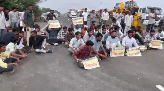 बदनावर में रिटोड़ी के किसानों के साथ अन्याय के विरोध में किसानों ने महू नीमच मार्ग पर किया चक्काजाम