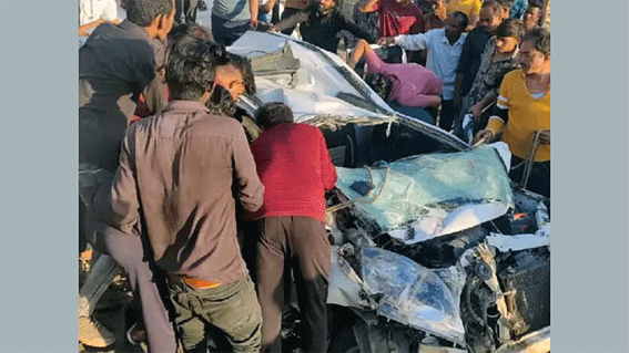 ओवरलोड ट्रक गिरा कार पर, तीन बच्चों के साथ सात लोग दबे, एक की मौत