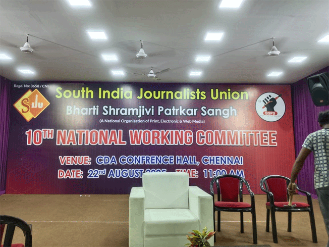 भारती श्रमजीवी पत्रकार संघ द्वारा एक दिवसीय कार्यशाला सह राष्ट्रीय कार्यकारिणी की बैठक आज चेन्नई में।केंद्रीय रक्षा राज्य मंत्री संजय सेठ मुख्य अतिथि के रूप में होंगे शामिल।चेन्नई: भारती श्रमजीवी पत्र...